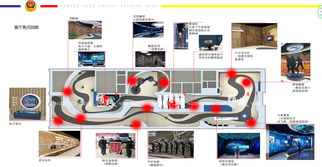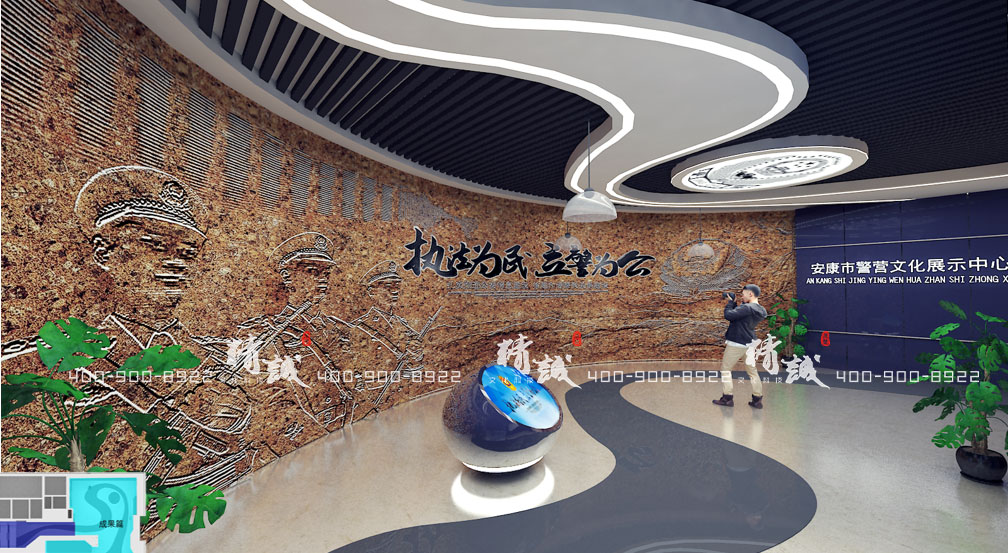通過浮雕人物和警魂藝術(shù)造型制作序廳形象墻,表現(xiàn)安康公安頑強(qiáng)拼搏的鋼鐵意志,不懼艱險(xiǎn)的精神,和安康公安干警一路風(fēng)雨、一路凱歌的光輝歷程。