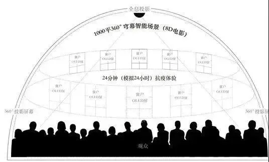 (武漢)中國(guó)防疫博物館策劃設(shè)計(jì)的360度8D影院,在一個(gè)1000平方圓形智能場(chǎng)景里,用24分鐘模擬武漢封城77天的過(guò)程,這個(gè)智能場(chǎng)景可以用風(fēng)、雨、霧、霾、味、聲、光、電等8種沉浸體驗(yàn)技術(shù)讓觀眾真實(shí)體驗(yàn)武漢77天封城抗疫戰(zhàn)役。全場(chǎng)分6個(gè)章節(jié),1:你好,武漢!2:37.3度,武漢!3:暫停,武漢!4:奮起,武漢!5:攻堅(jiān),武漢!6:記住,武漢!讓每個(gè)參觀者在24分鐘8D智能場(chǎng)景里親身體驗(yàn)從喧囂到恐懼到奮起抗?fàn)幍娇挂邉倮麢鸦ㄊ㈤_(kāi)的全過(guò)程。