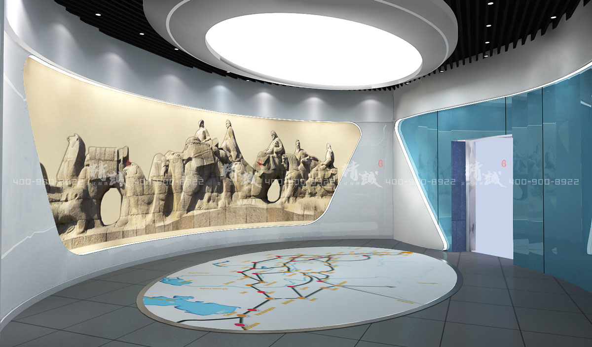 通過科技感極強(qiáng)的結(jié)構(gòu)投影技術(shù),展示蓮湖區(qū)的歷史典故:西漢張騫出使西域(絲綢之路群雕),展示皇城中心、宮城中心的歷史變遷。