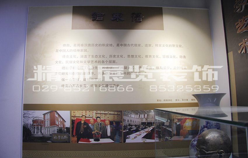 終南學(xué)社文化館是由精誠展覽裝飾在建設(shè)工作中參與競標(biāo),較終通過方案,并經(jīng)過詳細(xì)的策劃、設(shè)計(jì)、施工完成。我們始終秉承精益求精的匠心,堅(jiān)持專業(yè)化的理念,力圖為客戶制定獨(dú)具特色的個(gè)性化方案、精湛的施工品質(zhì)。