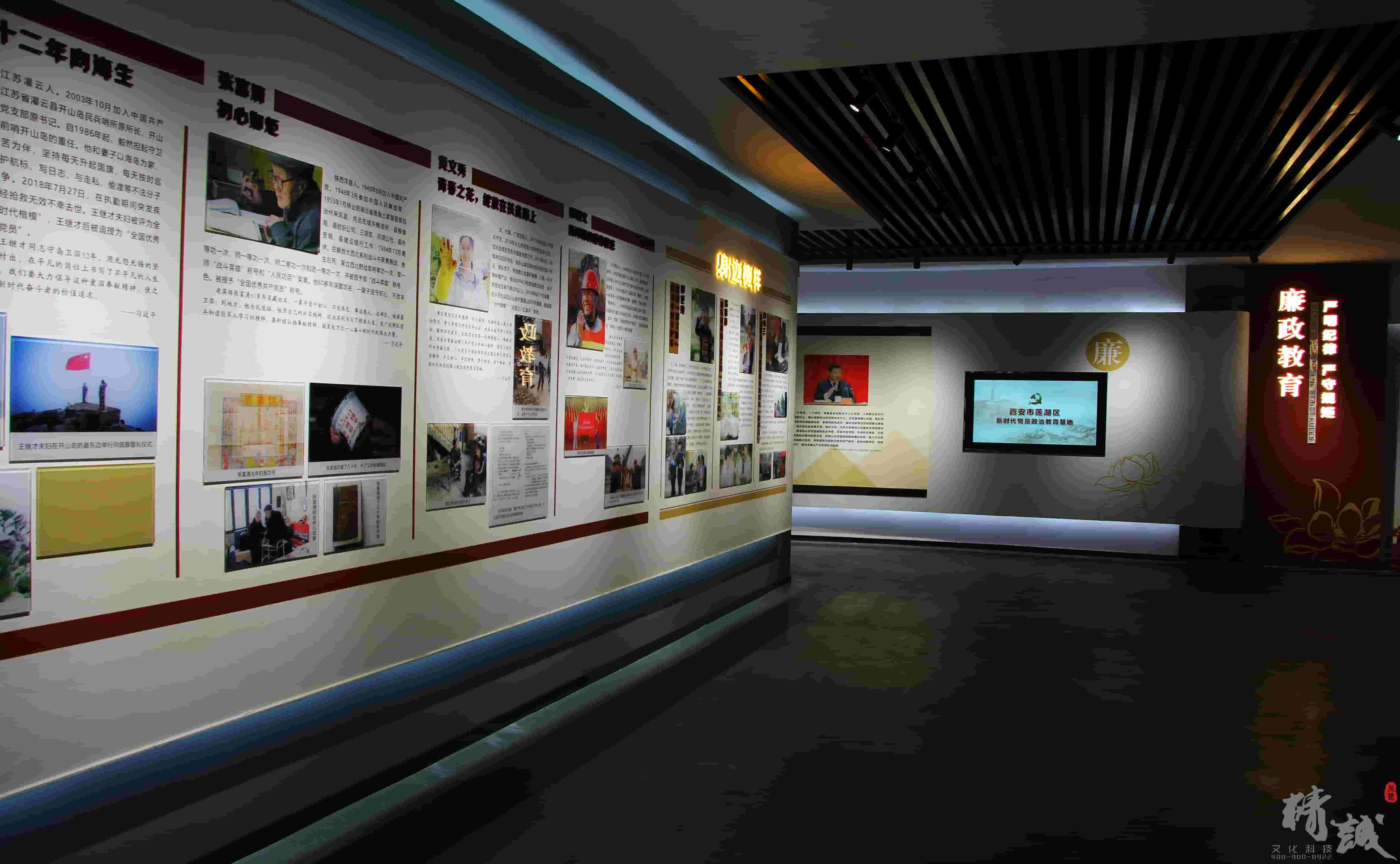 以畫軸的展現形式展示習近平總書記全面從嚴治黨重要論述,將廉政建設的重要性和意義娓娓道來,液晶顯示屏播放廉政教育相關視頻,注重從嚴治黨的正面宣傳,加強黨員干部的廉政作風。