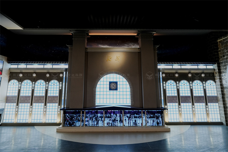 如延安火車站的展示,就采用場(chǎng)景還原結(jié)合數(shù)字多媒體的方式進(jìn)行了展現(xiàn),底部視頻生動(dòng)呈現(xiàn)了延安火車站1天24小時(shí)人流穿梭的畫面,帶給參觀者身臨其境的感受。