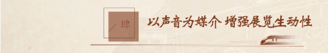 策展團(tuán)隊(duì)通過對(duì)當(dāng)?shù)孛袼孜幕难芯?,針?duì)每一展廳的主題和內(nèi)容,特別定制了不同的音效,著重選取了陜北民歌中的嗩吶、絞煤號(hào)子、趕牲靈、安塞腰鼓等音樂,以進(jìn)一步增強(qiáng)展覽的生動(dòng)性,帶給參觀者全方位的視聽感受。