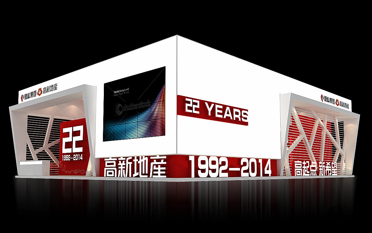 下圖是我公司(陜西精誠展覽裝飾有限公司)為高新地產(chǎn)設(shè)計的展覽效果圖,可供參考: