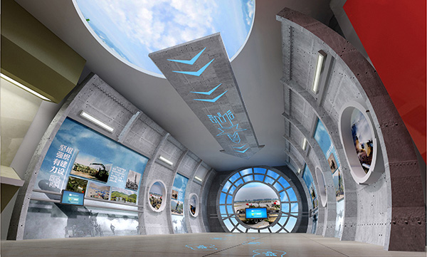 軍史館的設(shè)計遵循現(xiàn)代主義簡約設(shè)計風(fēng)格,嚴(yán)謹(jǐn)細(xì)膩,簡約而不簡單,豐富而不繁瑣,滲透出軍隊(duì)的莊嚴(yán),從形式上更新普遍 “畫廊式”展廳的基本展陳風(fēng)格。