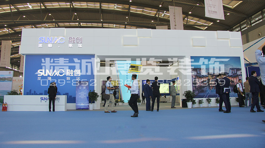 融創(chuàng)地產(chǎn)展位根據(jù)建筑立面造型延伸而來,通過軟膜燈箱以及木質(zhì)結(jié)構(gòu),體現(xiàn)了堅(jiān)持品質(zhì)匠心的精神。