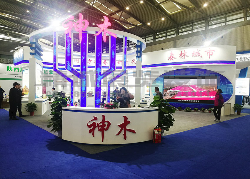 神木展位通過開敞的布局和富有創(chuàng)意的承重結(jié)構(gòu)造型,結(jié)合燈箱、LED拼接屏,使整個(gè)展位形象充滿靈動(dòng)性。同時(shí)運(yùn)用科技元的素點(diǎn)綴,突出地方產(chǎn)業(yè)在科技的驅(qū)動(dòng)下,日益增長的經(jīng)濟(jì)狀態(tài)。