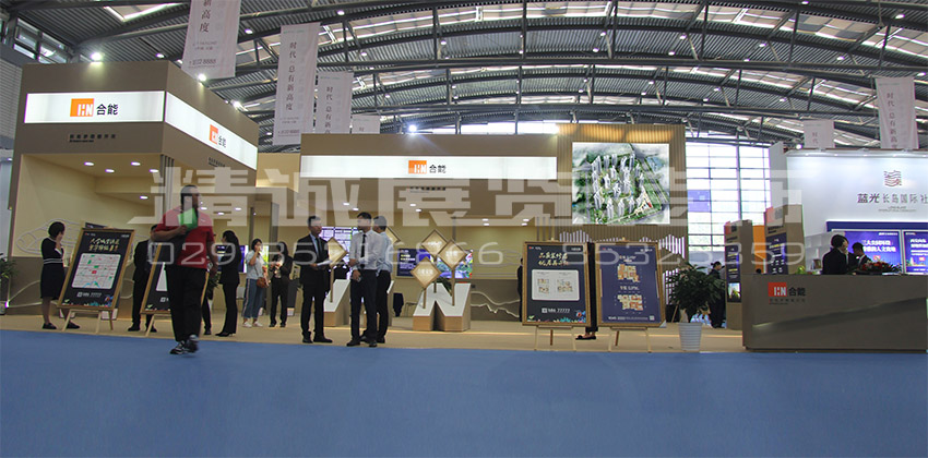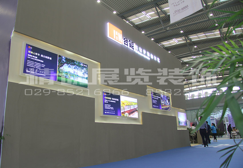 合能地產(chǎn)展位以象征現(xiàn)代、科技、創(chuàng)新的風(fēng)格設(shè)計(jì),通過設(shè)置LED大屏、燈箱展板、區(qū)域規(guī)劃圖等表現(xiàn)手段,并以建筑造型為展位外形,體現(xiàn)了堅(jiān)持品質(zhì)匠心的精神。