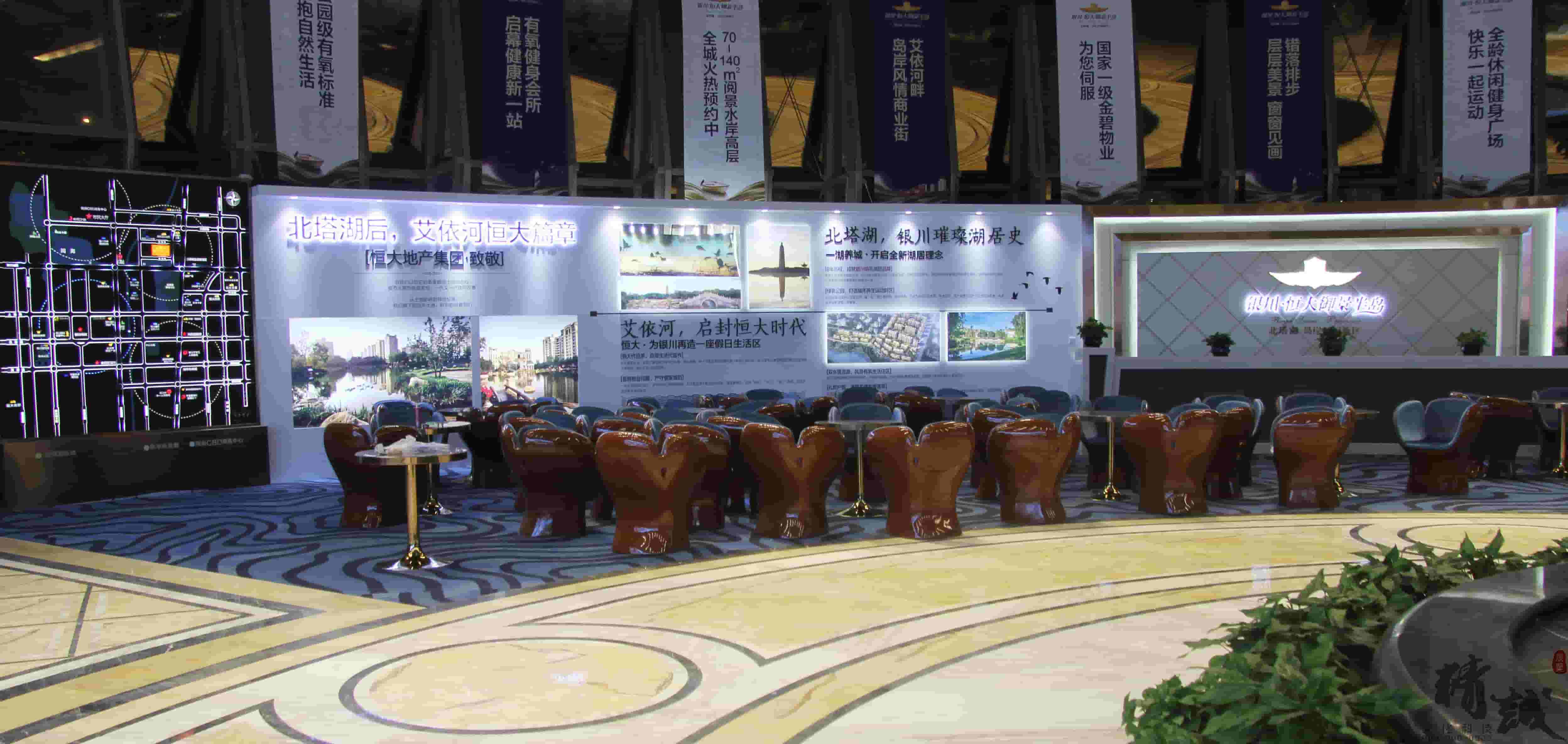以下的幾組圖是我公司(陜西精誠展覽裝飾有限公司)為恒大御景半島展示中心設(shè)計的裝飾裝修圖,請往下欣賞:
