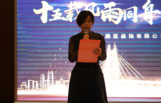 總經(jīng)理李國鋒先生上臺發(fā)言,講述了從2004年精誠展覽成立,到2018年成長的點點滴滴,以及所取得的榮譽和成就,并在最后祝賀精誠展覽十五周年生日快樂。
